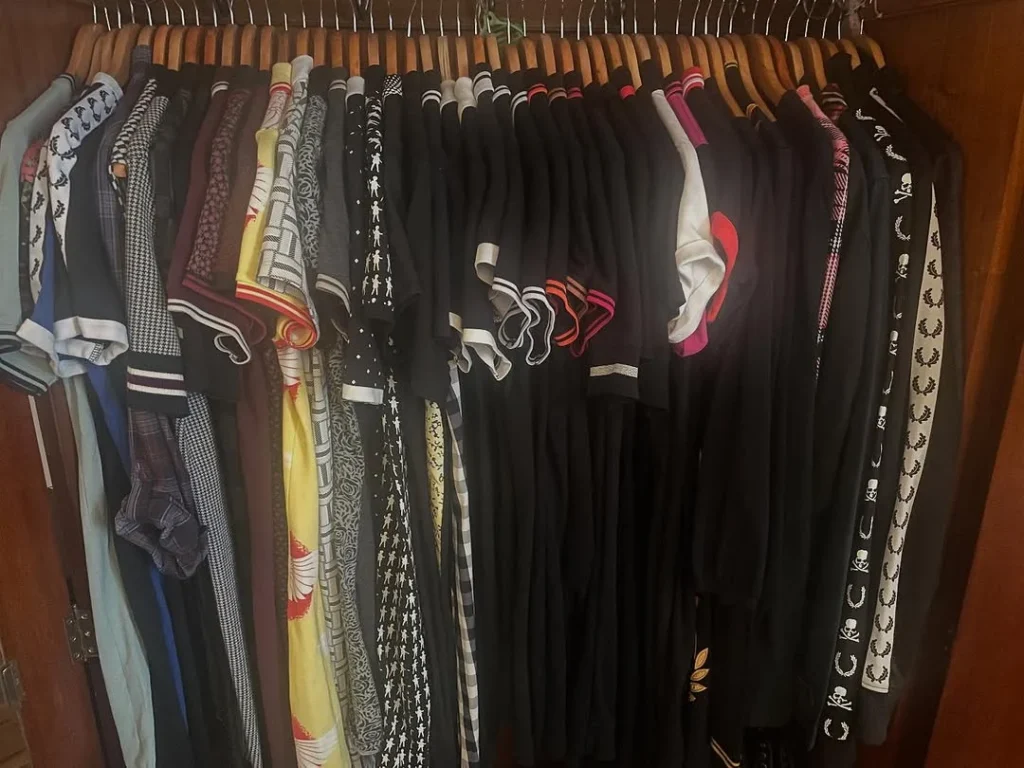 I must have around 300 items. I have 55 polos and 45 dresses. Plus T-shirts, shirts, trousers, shorts, skirts, knitwear, bags, socks, hats, scarves, gloves, shoes, jewellery, coats…