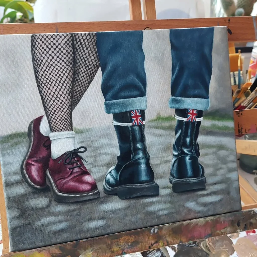 When I first watched This Is England, it felt like Britain was back on the map — it revived the skinhead style for a new generation. It has definitely influenced my art. Another major influence is the artist J.H. Lynch — his painting Tina has been hugely inspiring to me.