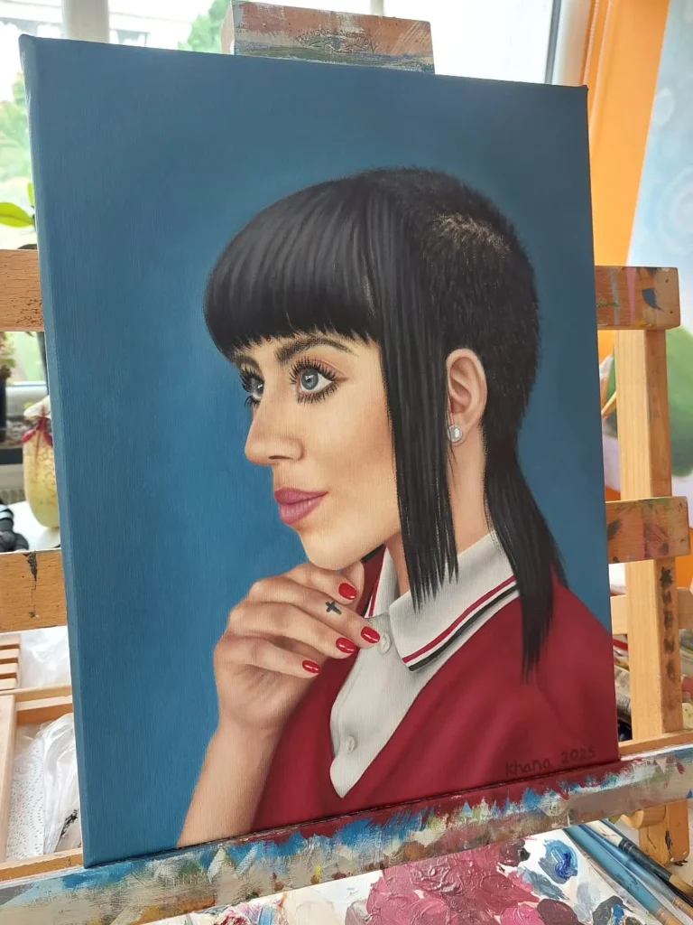 I got really into painting portraits in my early twenties. It was my ambition to do it full time and I even got myself on an art tv show, and in exhibitions and magazines but then I just got fed up and stopped painting for years. Now I am back in love with art and I’m obsessed with painting again, and very serious about what I am doing.